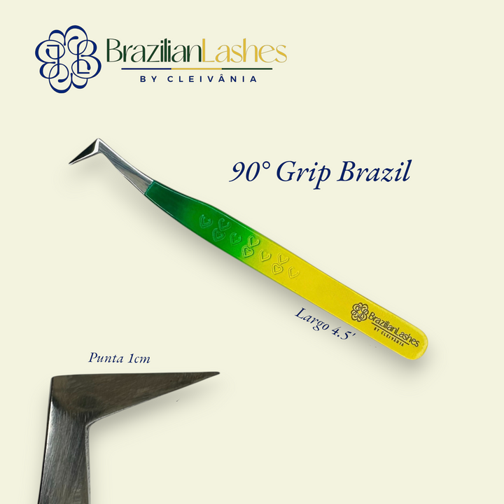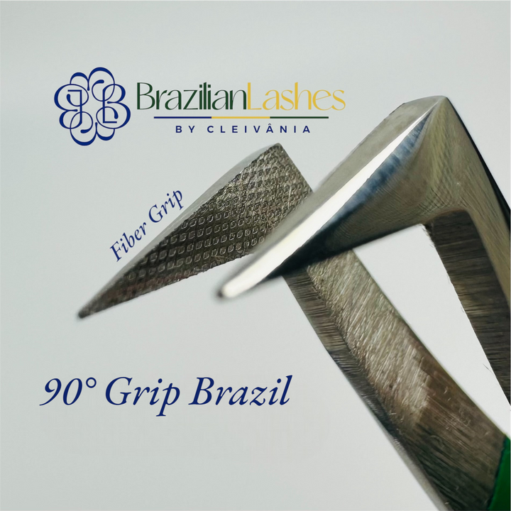 90° Grip - Pinza Brazil en forma de "Bota", tiene un ángulo 90 grados y posee punta de agarre de fibra antideslizante. La punta "Fiber Grip" es ideal para trabajar todo tipo de pestañas, desde fibras tecnológicas hasta mega volumen. Su punta fina y corta, te permitirá trabajar con diferentes grosores desde 0.03 hasta 0.15. Recomendada para principiantes y expertos. Punta de agarre antideslizante "Fiber Grip".