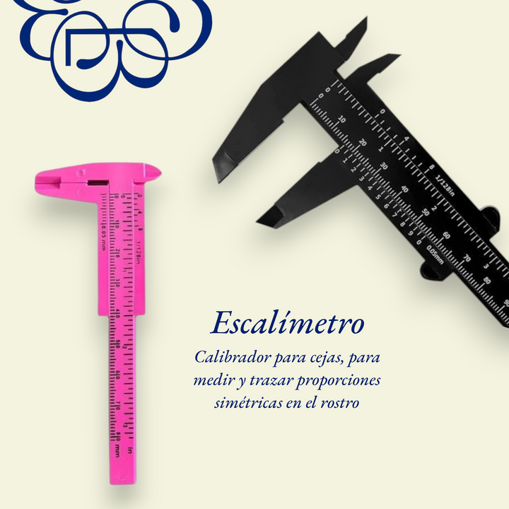 El escalímetro es el instrumento que se utiliza para medir las cejas para los diferentes servicios de cejas, tales como, laminado, microblading y micropigmentación. Facilita el trabajo de diseñar las cejas con precisión, es una herramienta imprescindible para los trabajos de visagismo.