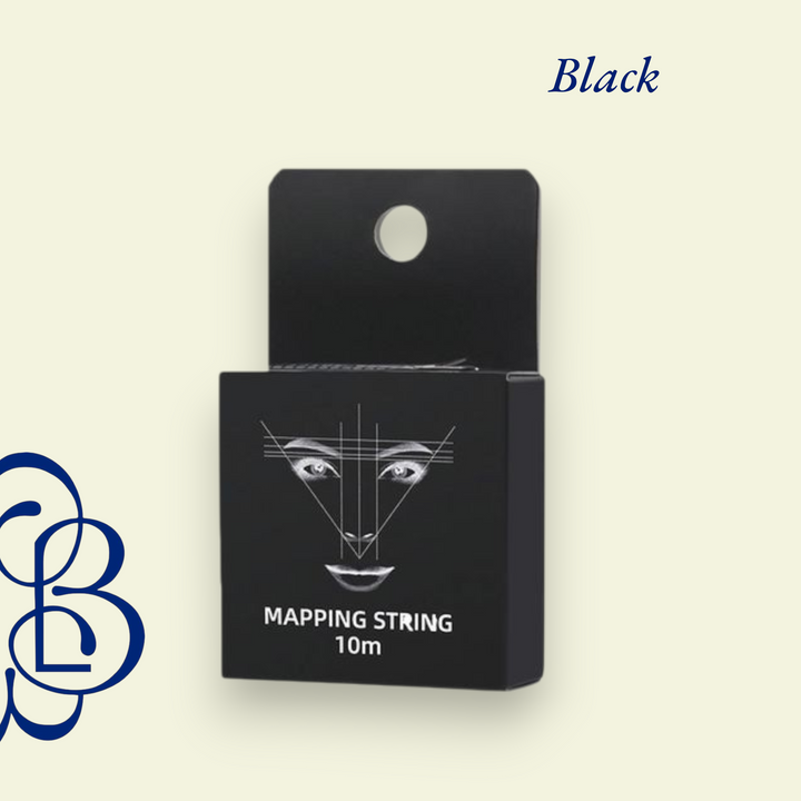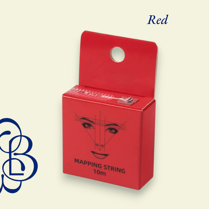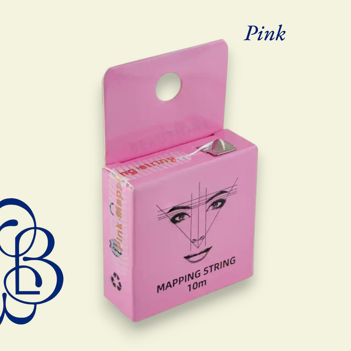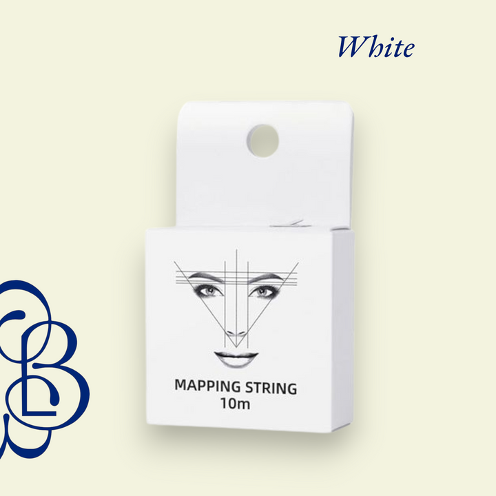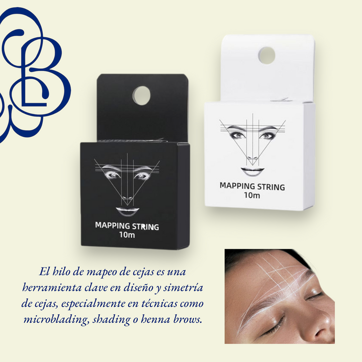 Hilo de Mapeo, se utiliza para marcar las dimensiones de cejas de acuerdo al rostro. Logra una simetría perfecta en las cejas antes del realizar un servicio. Hilo pinta del color de la caja.