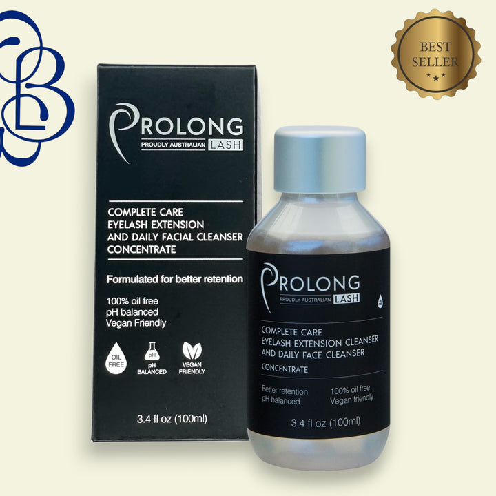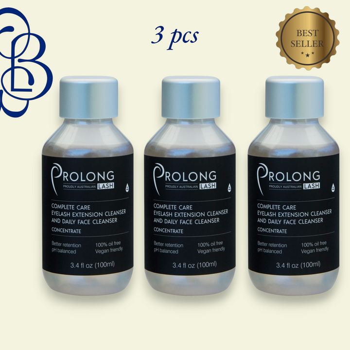 Limpiador concentrado "Prolong" sin aceite compuesto con ingredientes naturales y libre de aceite, glicerina, glicerol, etanol, parabenos, fragancias sintéticas y colores artificiales. Una botella tiene capacidad para generar hasta 25 botellas de "shampoo" para pestañas.