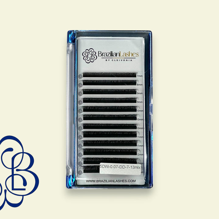 Fibras Tecnológicas W5D Largo: Mix 8mm-13mm Grosor: 0.07 Color: Negro Curva: C / CC / DD Tiras: 12 líneas Material: Seda