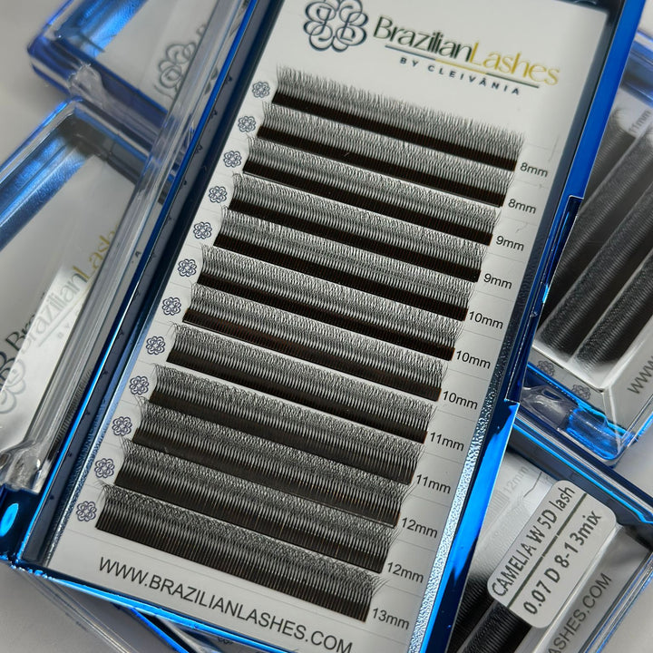 Fibras Tecnológicas W5D, efecto "Camelia" diseñado para brindar un volumen ligero. Cada fibra combina varias longitudes en una sola pestaña, creando un efecto multidimensional como los looks Wispy o Wet Effect en un volumen suave.