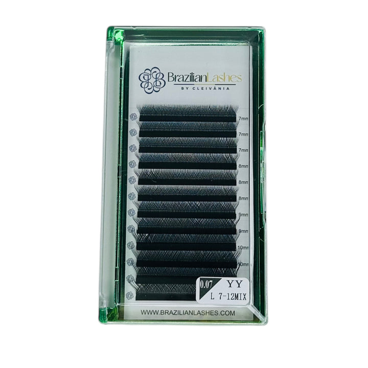 Fibras Tecnológicas YY Largo: Mix 8mm-13mm Grosor: 0.07 Color: Negro Curva: L / M Tiras: 12 líneas Material: Seda